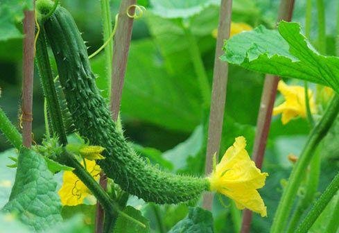 我还同时种了两棵美国当地菜农育的“中国”品种的黄瓜。长出来的样子,乍一看与北京黄瓜几乎难分伯仲,可皮厚,吃前得削皮,大概算是北京黄瓜的美国改良版了。