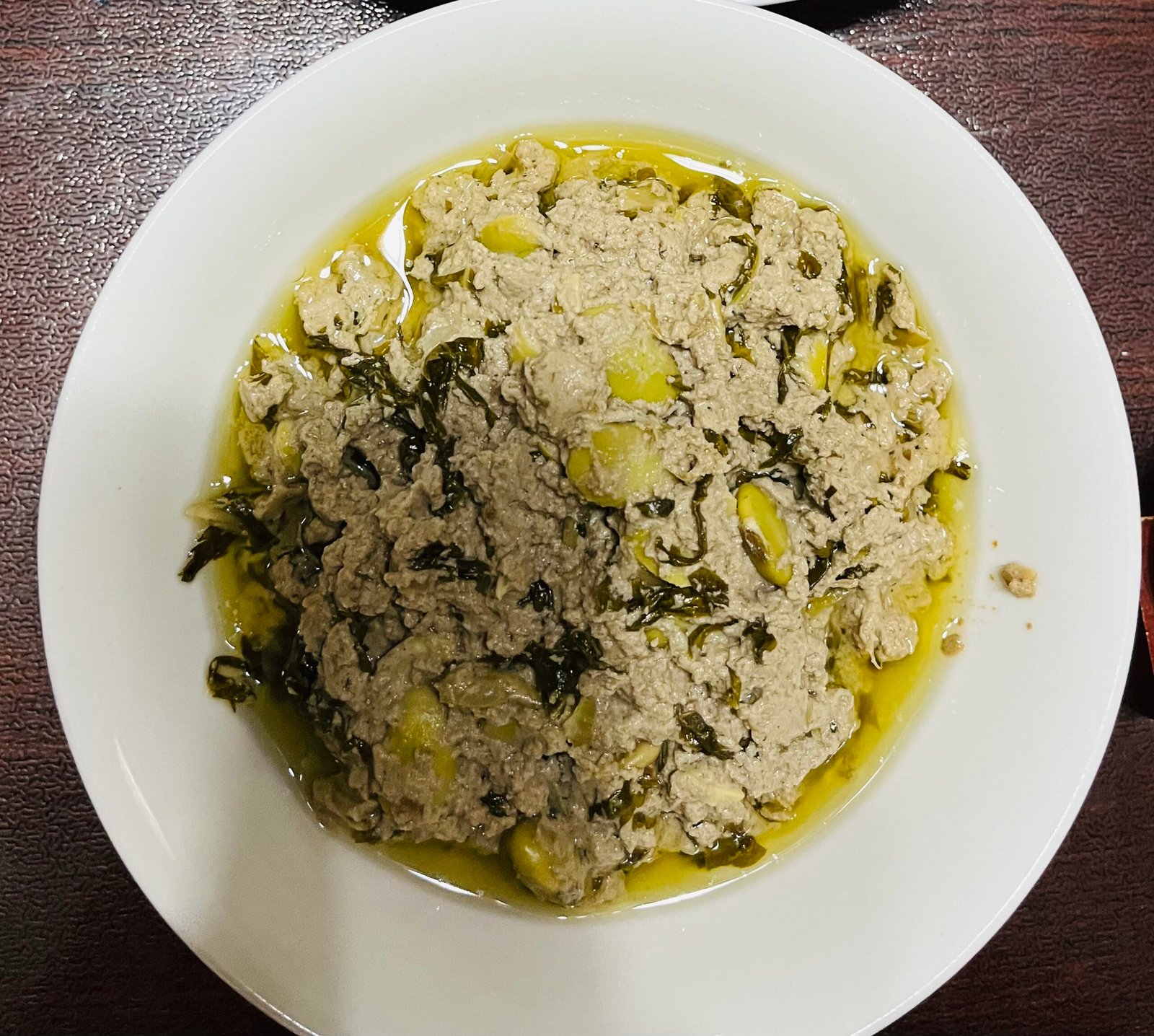 正宗的炒麻豆腐,必须用羊尾油,这是灵魂。再配上雪里蕻或青菜末,加少量黄酱提味,最后撒一把黄豆嘴儿,或点几滴红辣椒油。炒出来不是清爽那一路,而是糊、黏、香、厚,看着不起眼,入口却极有分寸。