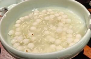 酒酿圆子常见于早餐或夜宵,也特别适合寒凉的日子。小圆子软糯,漂在微酸微甜的酒酿汤里,热气腾腾。酒香很轻,却足以暖胃,也暖心。