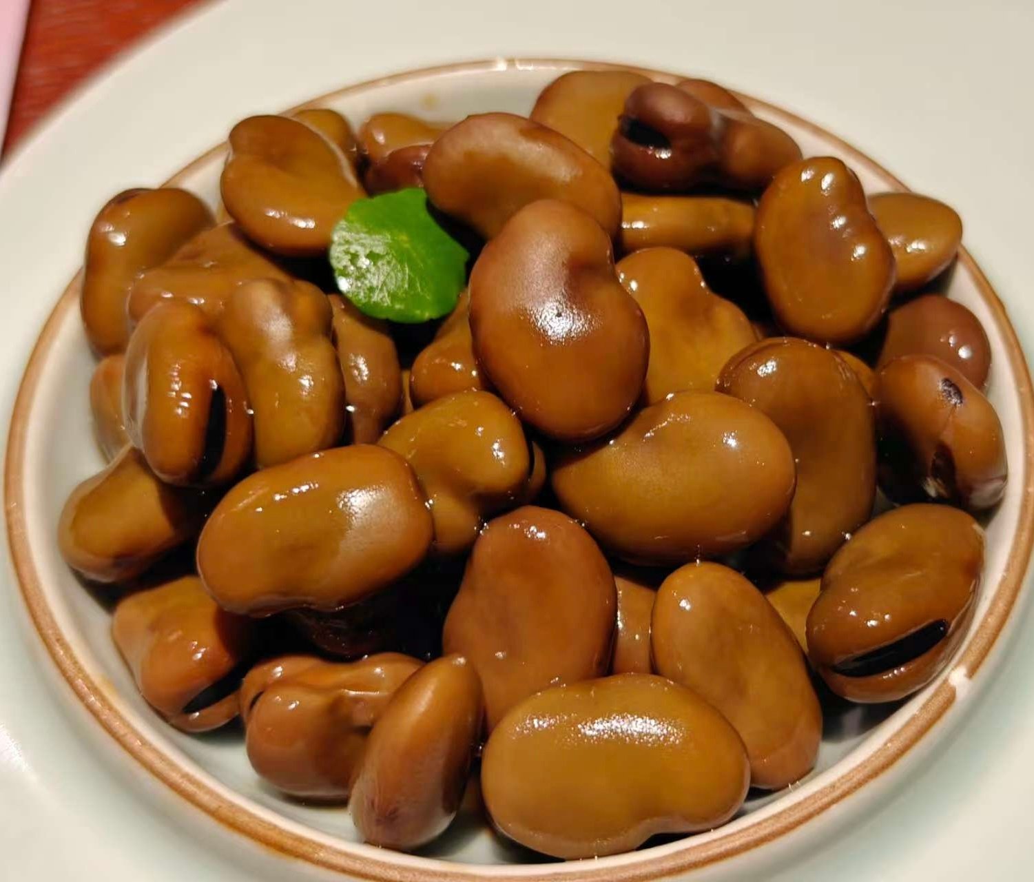 蚕豆煮得软而不烂,裹着茴香、酱油和一点微甜,颜色深褐,香气内敛。它不抢味,却耐嚼,越吃越香。